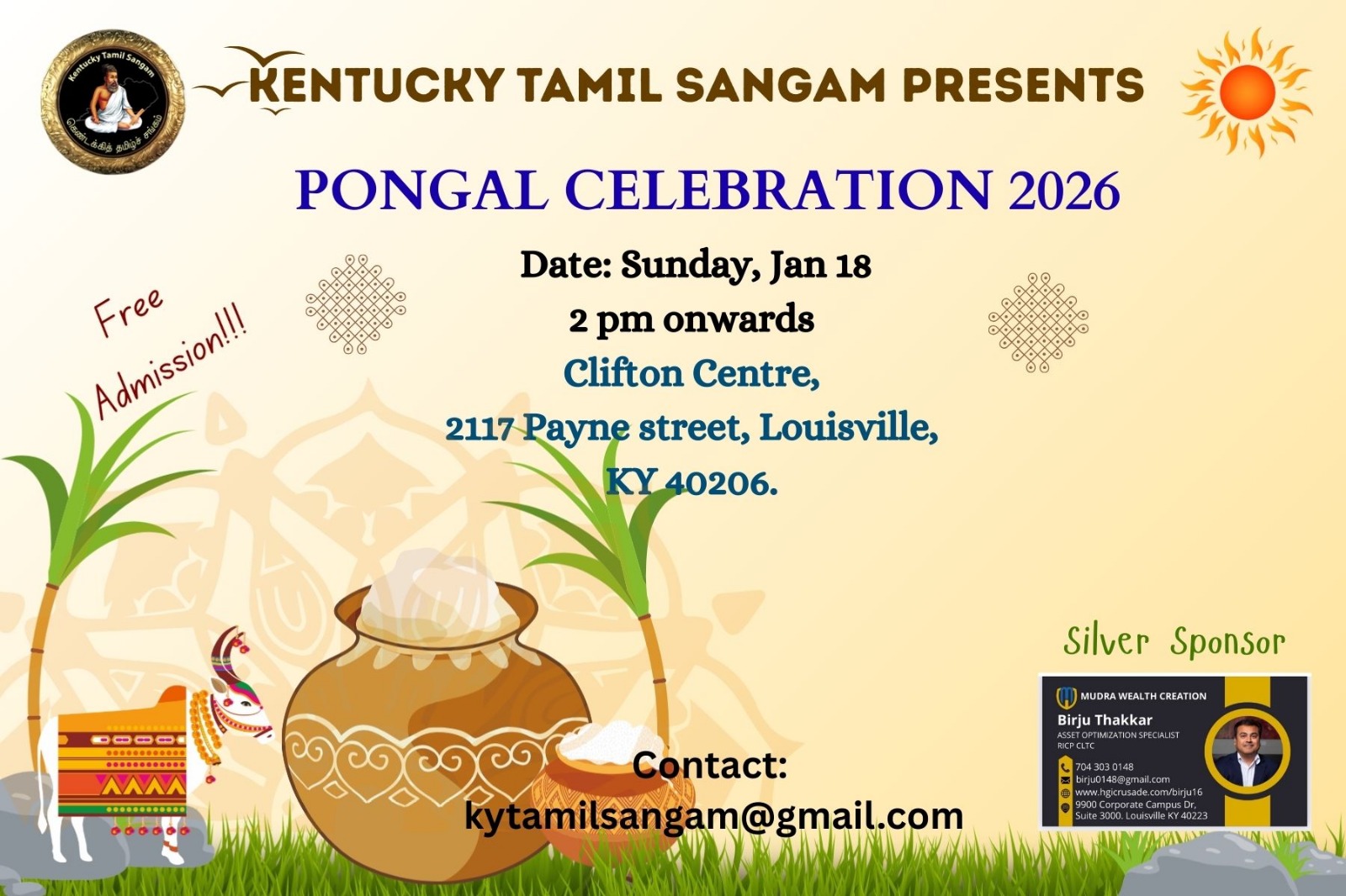 Kentucky Tamil Sangam is a secular, non-profit and non-political organization. It has been serving the Kentuckiana area since 2003. It was started as a group for like-minded Tamils to socialize and has grown into a strong organization of what it is now. We seek to promote and co-ordinate Tamil culture, educational and community activities. We are open to all persons interested in promoting the Tamil language and culture. We sincerely thank the entire KYTS members and Family for your continued support and patronage.